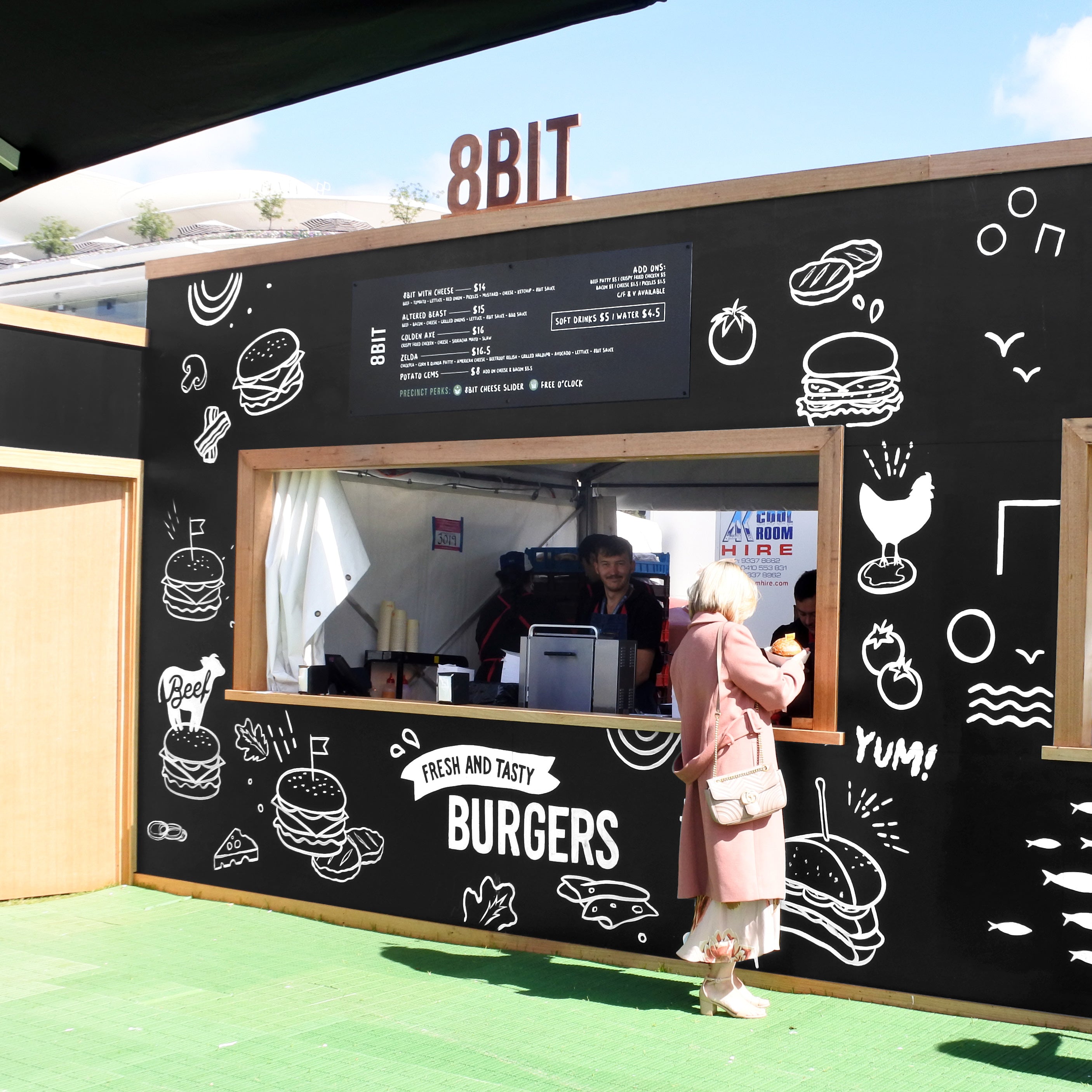 The aim was to capture the atmosphere and energy of the races in a modern and contemporary way, while complimenting each individual food stall brand for an overall cohesive look.