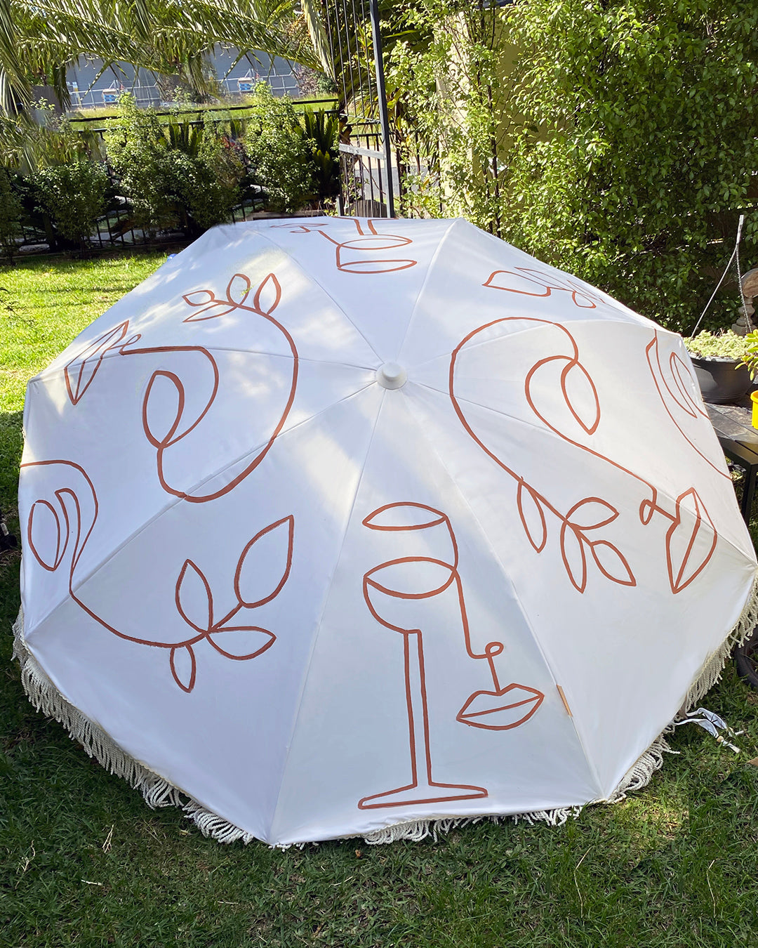 Digital designs embroidered on hats and t-shirts. Graphic art on sunscreen bottles and packaging as well as hand painted umbrellas.