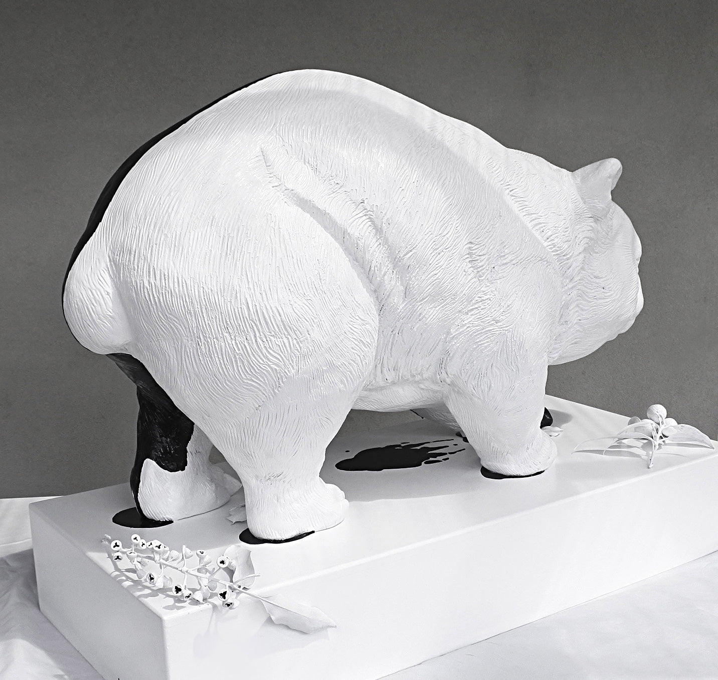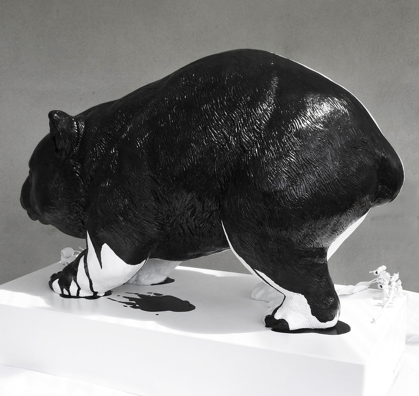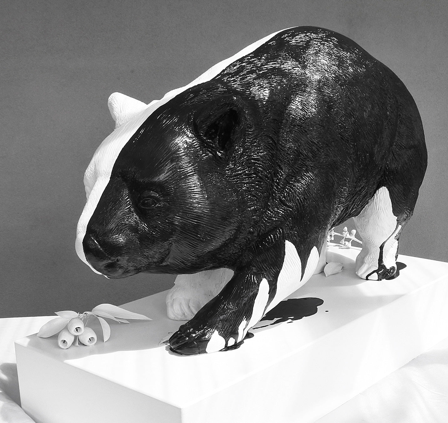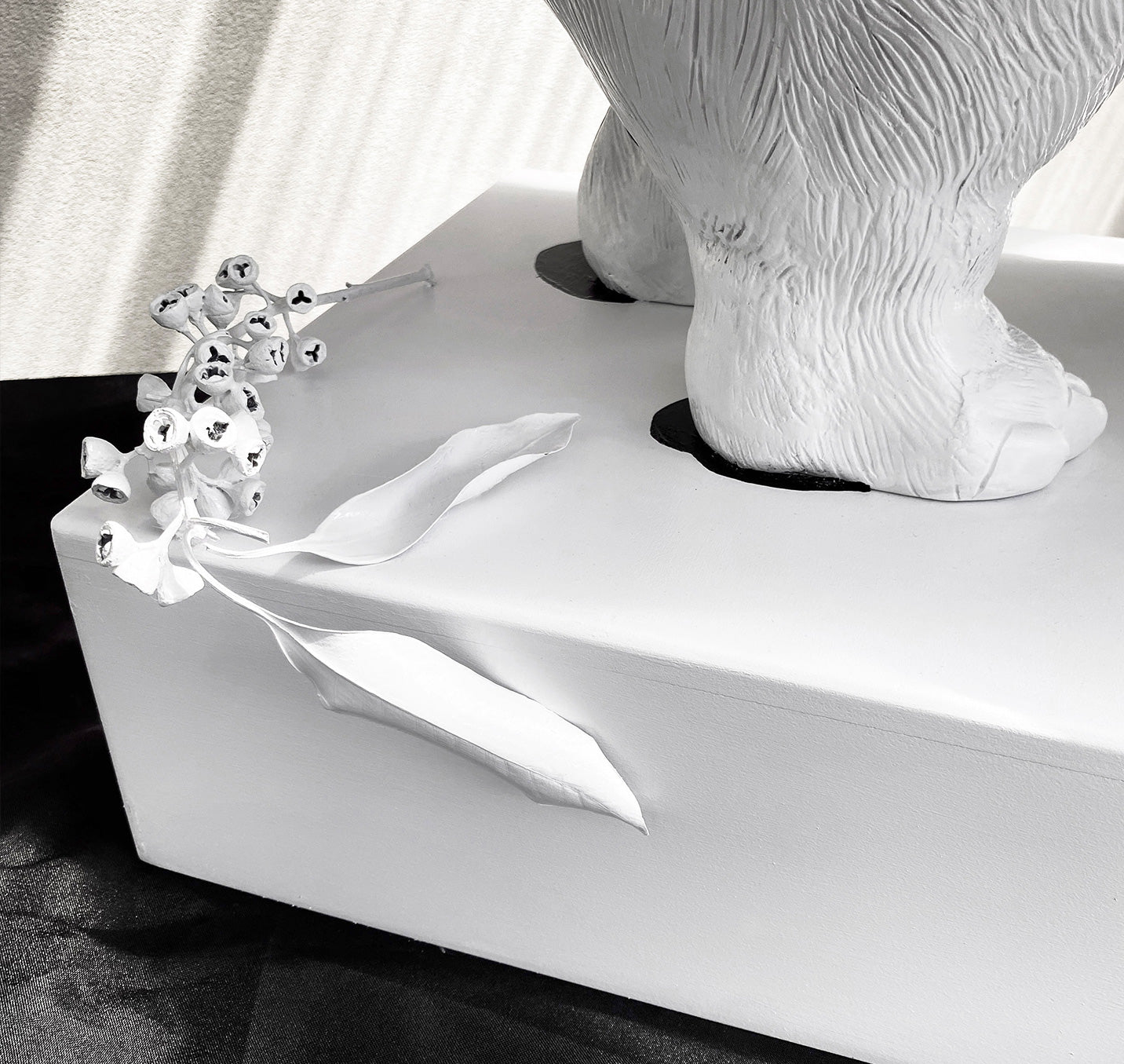 Gumnuts and leaves were collected, which were painted then added to the sculpture, reinforcing the natural environment as well as a black footprint, giving it a life-like feeling. With the intention to suit most homes with its minimal black and white aesthetic, it can be displayed either side to show a different look and perspective.
